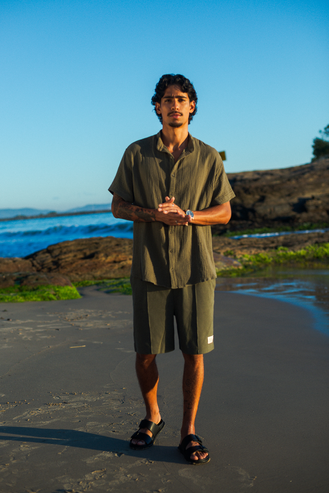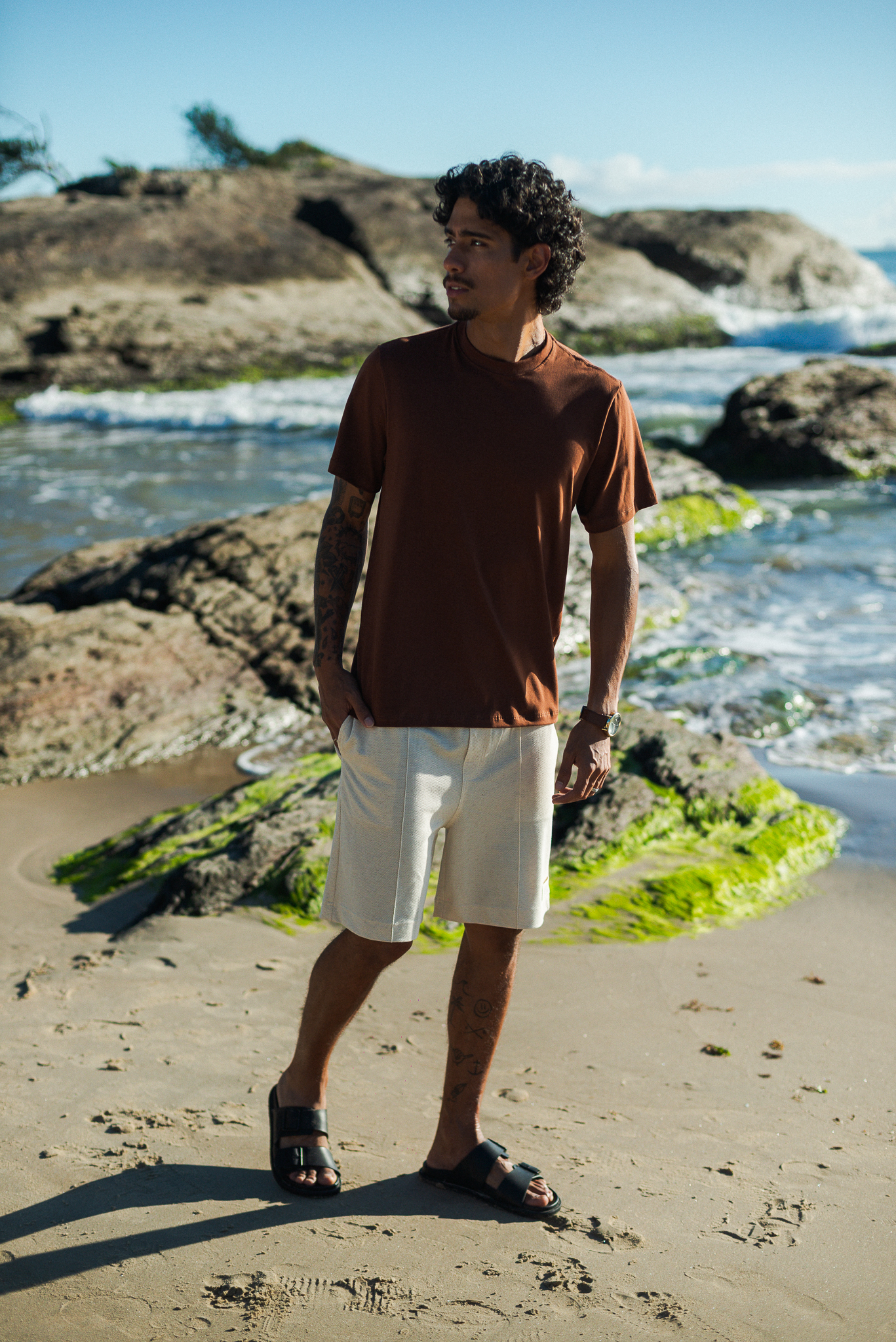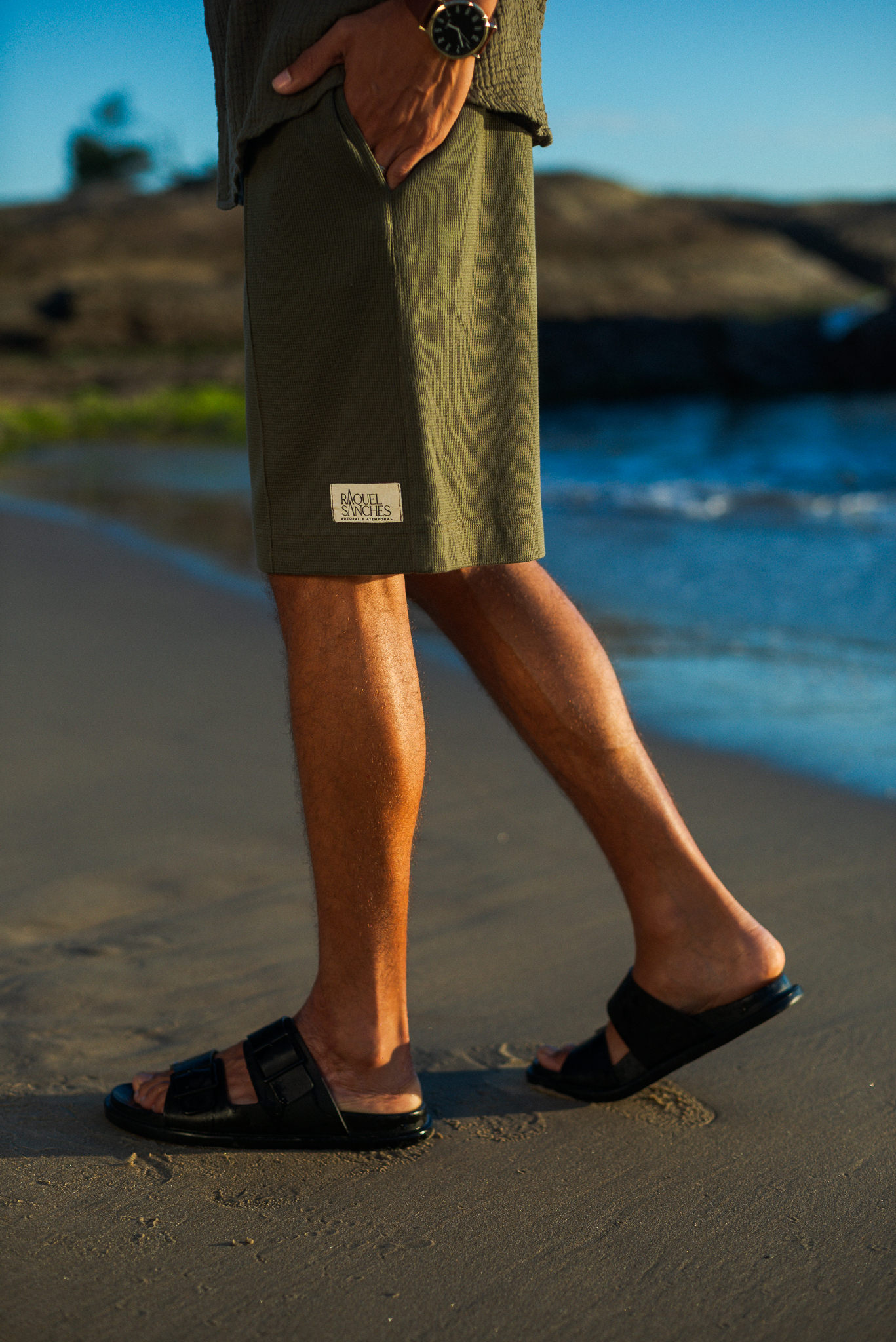 Uma bermuda que equilibra conforto e forma: casual na matéria-prima, refinada nos detalhes. Transita entre diferentes momentos com naturalidade.